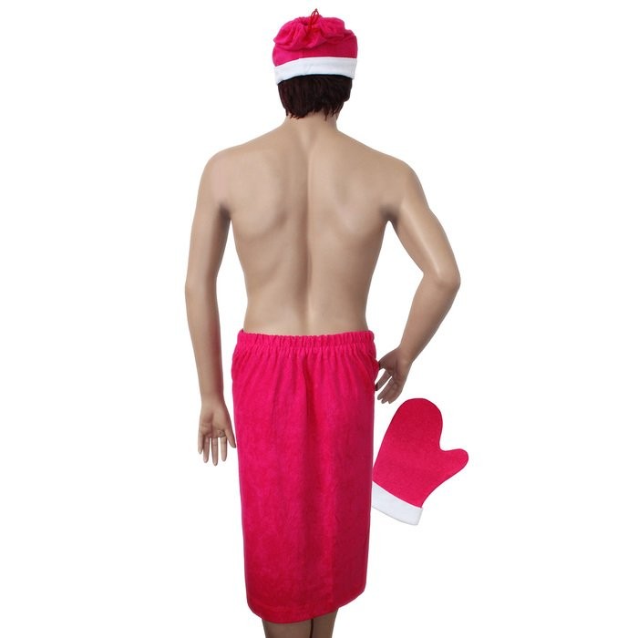 Комплект для сауны с вышив муж Дед Мороз (килт 80×150, вареж, шапка), махра 190г/м хл100%