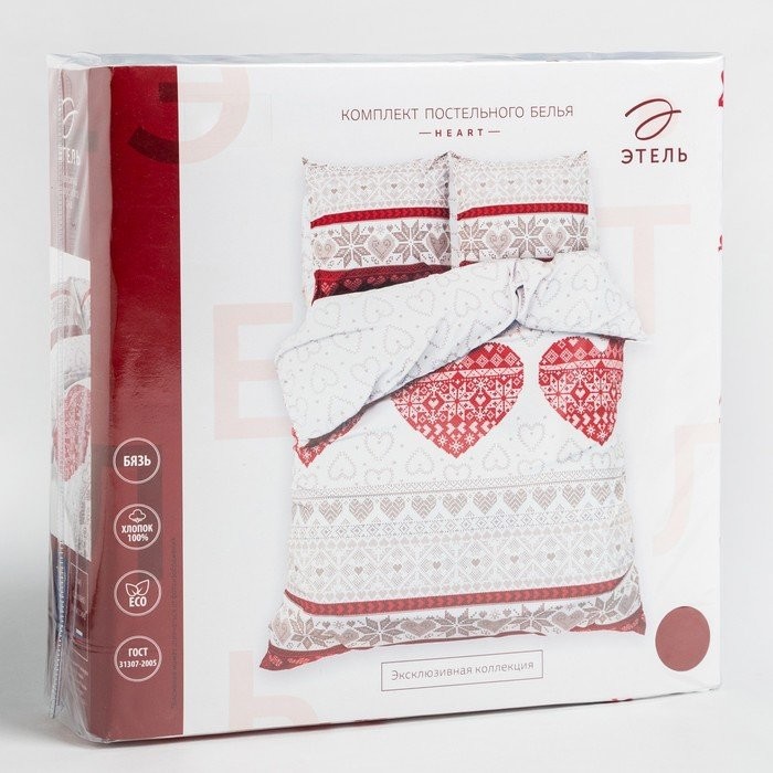Постельное бельё «Этель» 2 сп Heart 175*215 см, 200*220 см, 70*70 см -2 шт, 100% хл, бязь