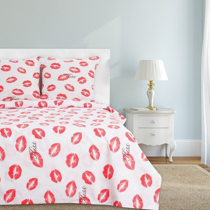 Постельное бельё «Этель» 2 сп. Яркий поцелуй175×215 см, 200×220 см, 70×70 см — 2 шт., 100% хлопок, бязь 125 г/м²