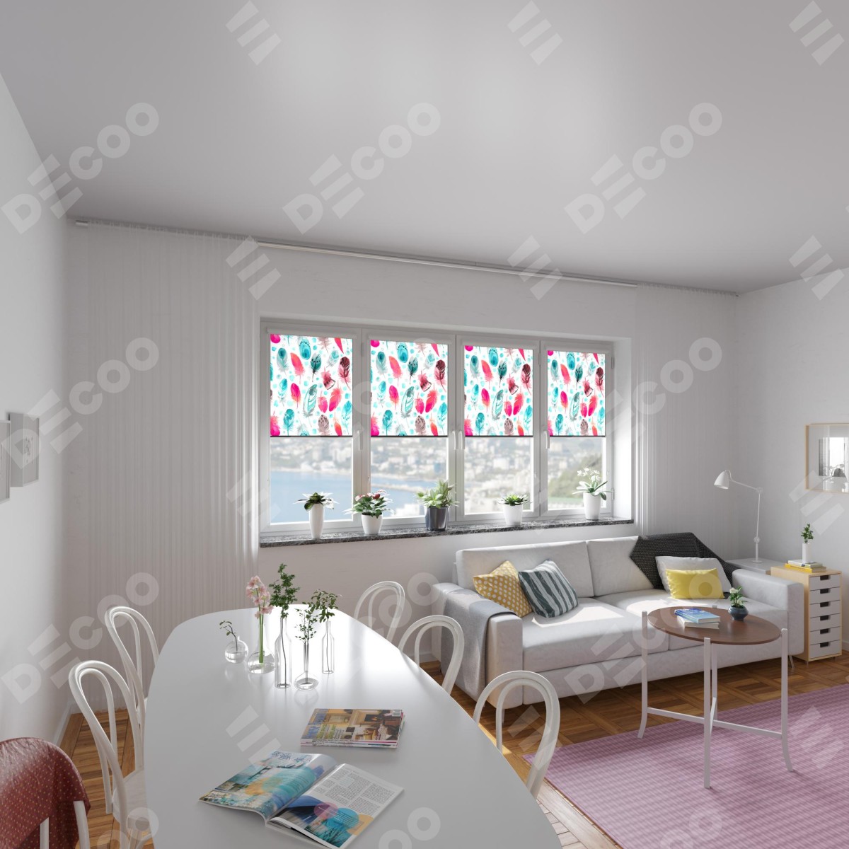 Купить Рулонная штора Уни 2 с принтом Перья по любым размерам. Артикул товара: 503. Цена изготовления на изделие будет зависеть от заданных параметров и стартует от 2 100 руб. В магазине Decoo вы сможете выбрать рулонные шторы в любых размерах.