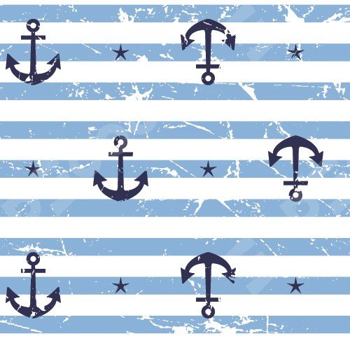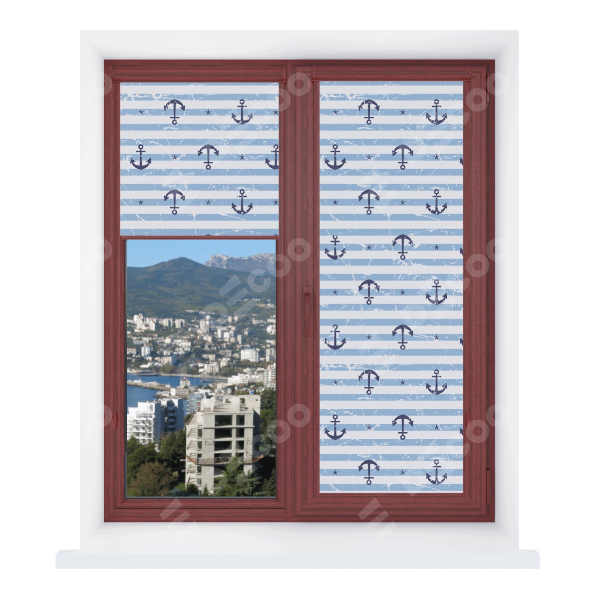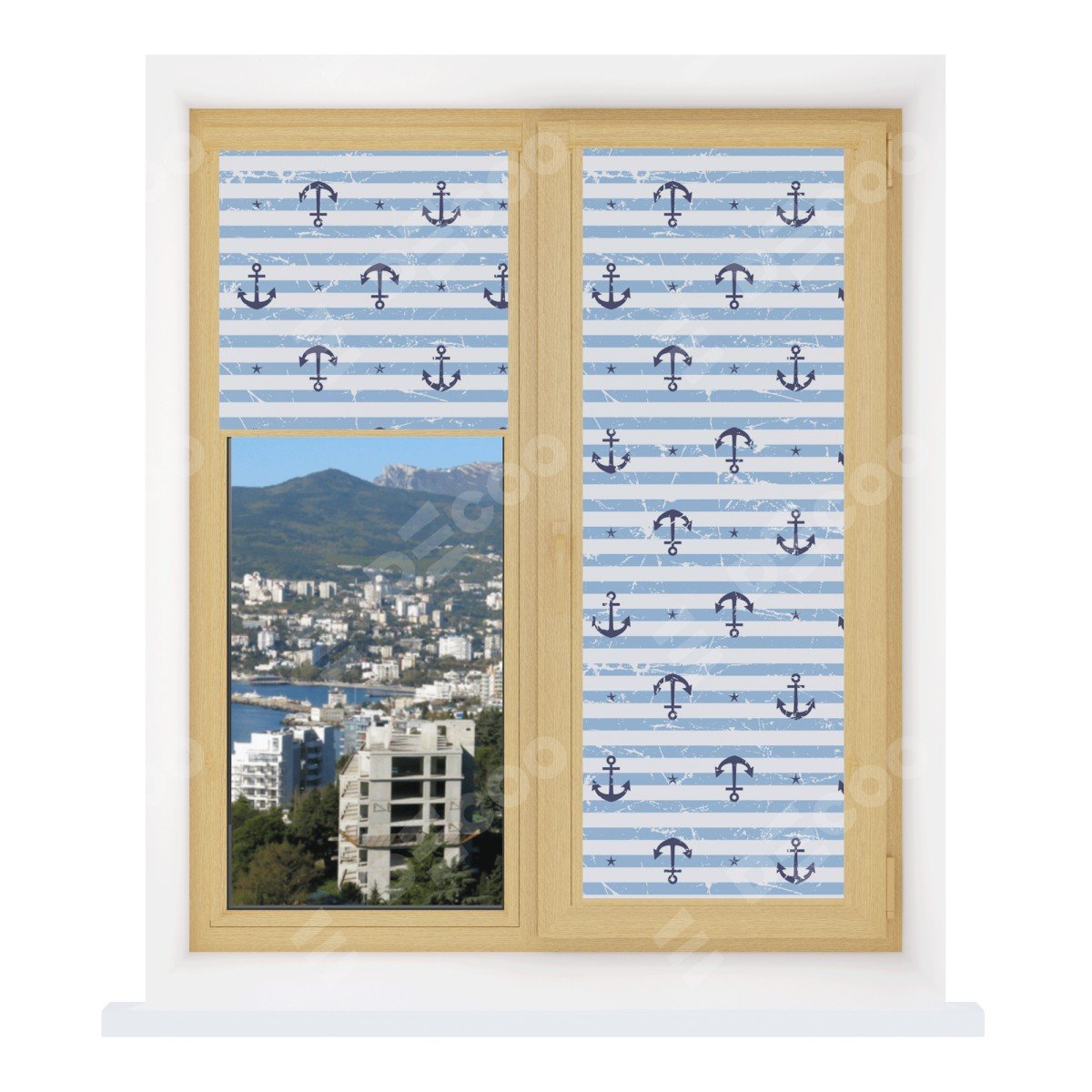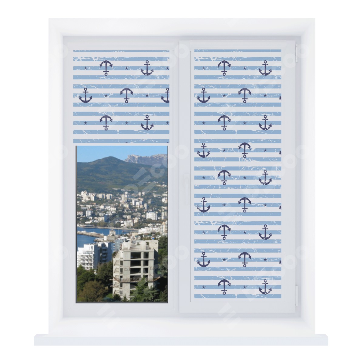 Рулонная штора Уни 2 с принтом Полоски и якори отлично подойдёт для интерьера: ванная, детская и для общественных мест.
