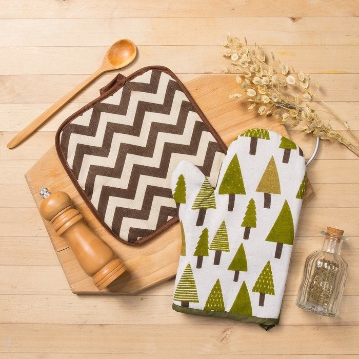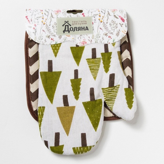 Набор Доляна, варежка+прихватка Хвойный лес/Зигзаг корич,100%пэ, рогожка 200 гр/м