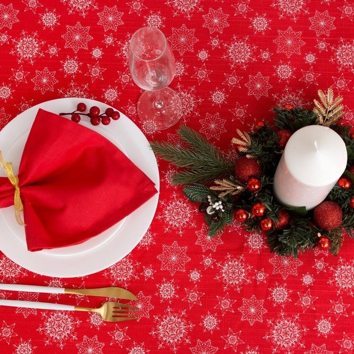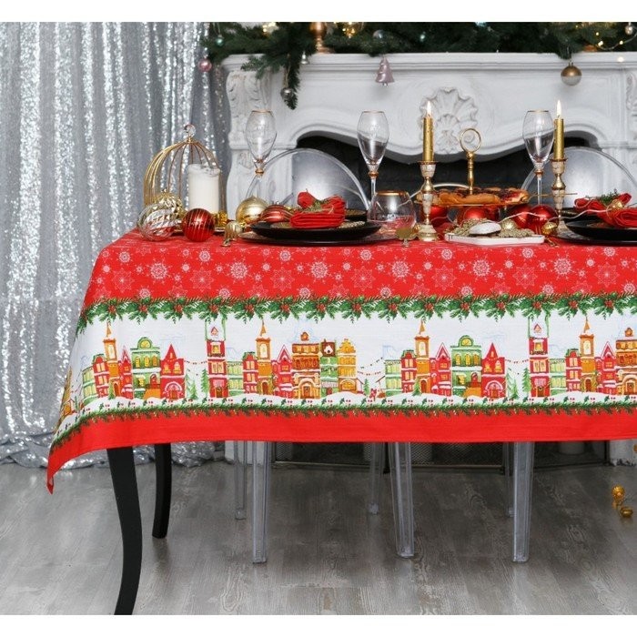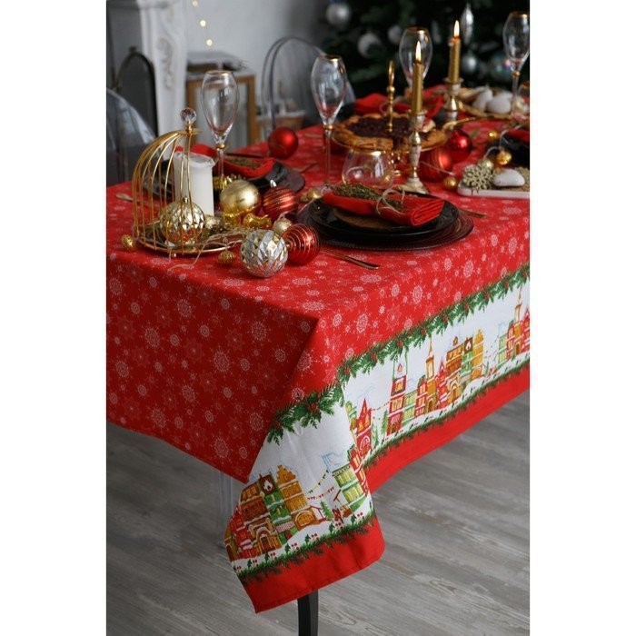 Скатерть Доляна «Новый год: Волшебный город» 180×149 см, 100% хлопок, 164 г/м2