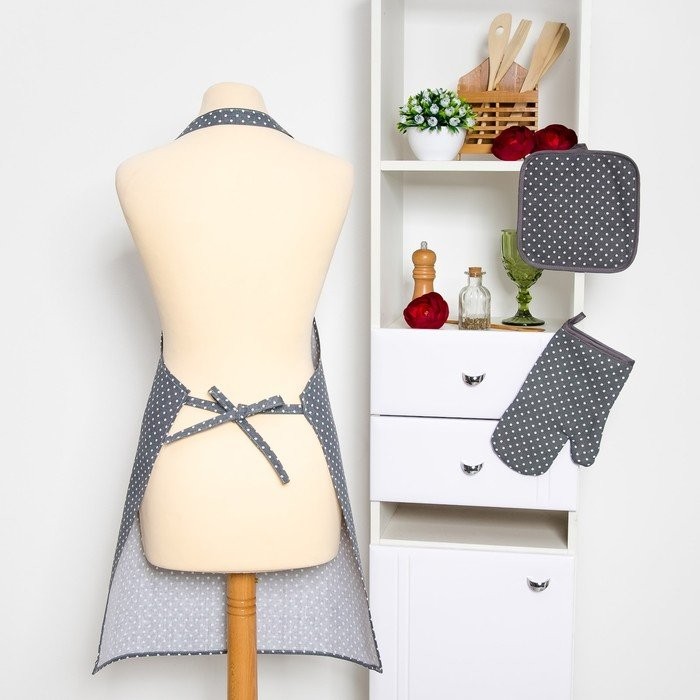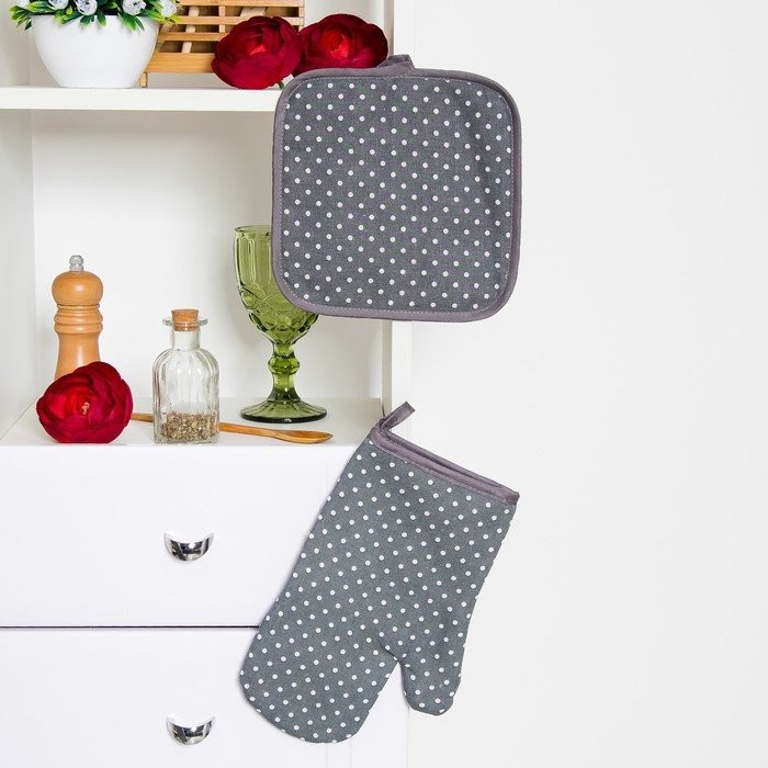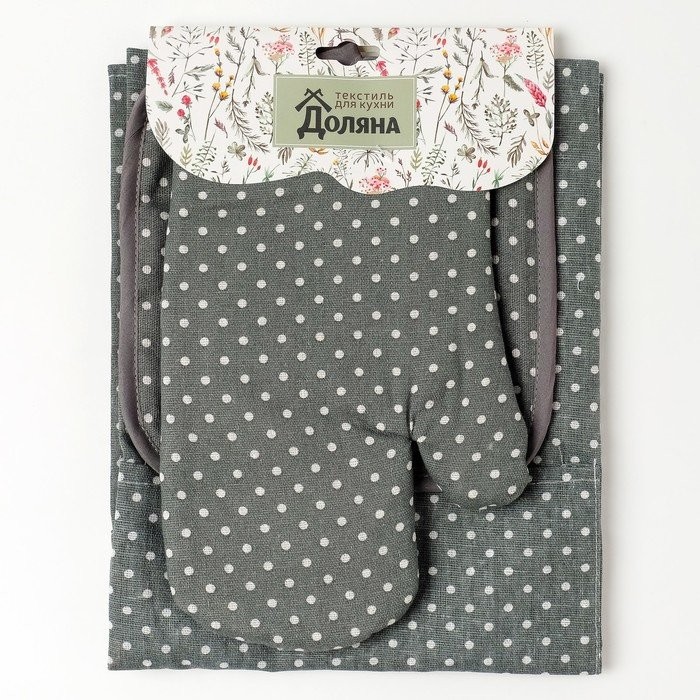 Набор Доляна фартук/прихватка/варежка, Горох сер, 100%пэ, рогожка 200 гр/м