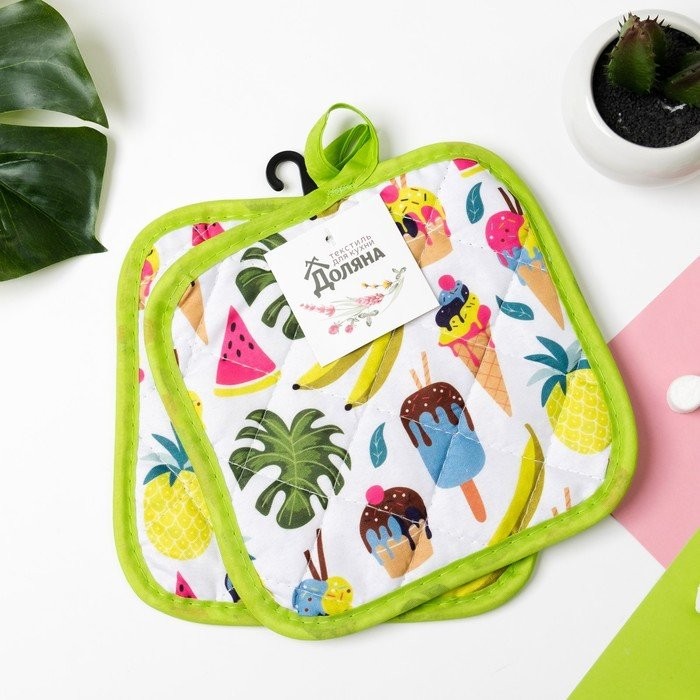 Кухонный набор (2 предмета) Доляна Summer, прихватка 16×16 см — 2 шт, 100% п/э