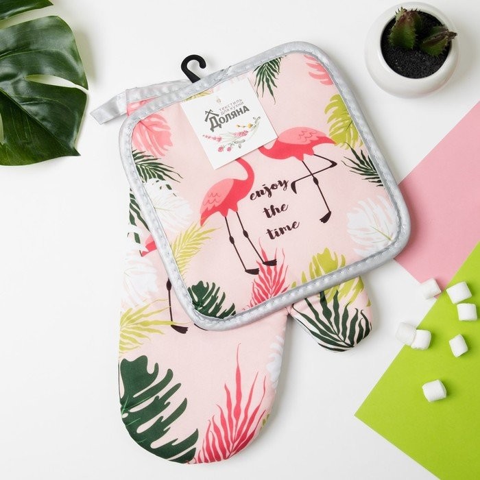 Кухонный набор Доляна Enjoy, прихватка 16*16 см, рукавица 26*17 см,100% п/э