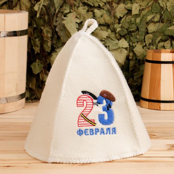 Шапка для бани «23 Февраля», войлок, белая