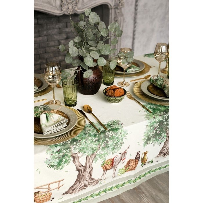 Набор столовый Этель Olivia, скатерть 220×150 см, салфетки 40×40 см-12шт, 100% хл