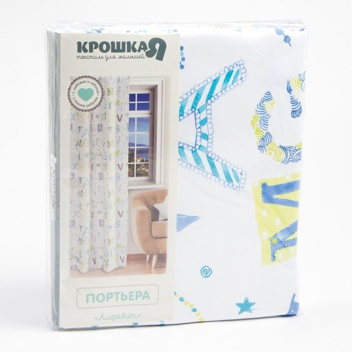 Портьера Крошка Я «Алфавит» без держателя цвет белый, 170×260 см, блэкаут, 100% п/э