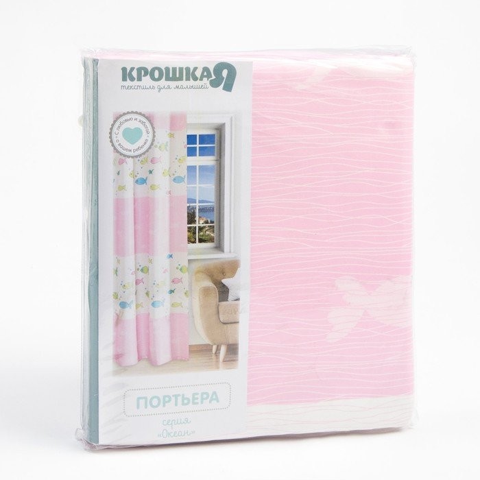 Портьера Крошка Я «Океан» без держателя цвет розовый, 110×260 см, блэкаут, 100% п/э