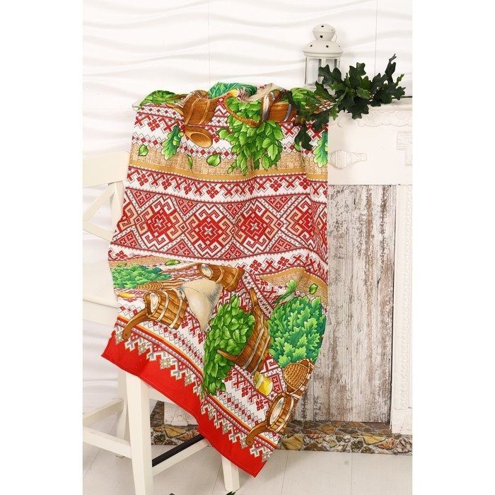 Вафельное полотенце «Русская баня», размер 80×150 см, разноцветный, хлопок