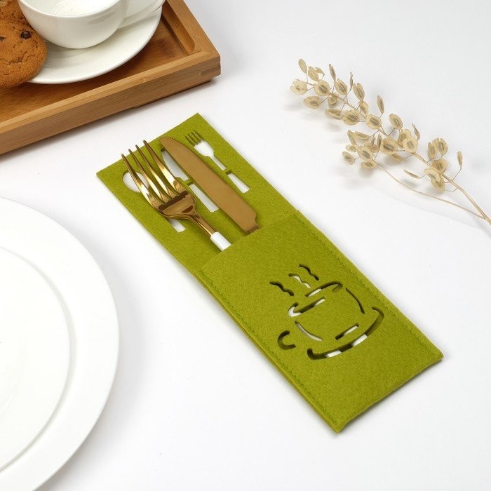 Конверт для столовых приборов Доляна «Кофе» цвет зелёный, 9×25 см