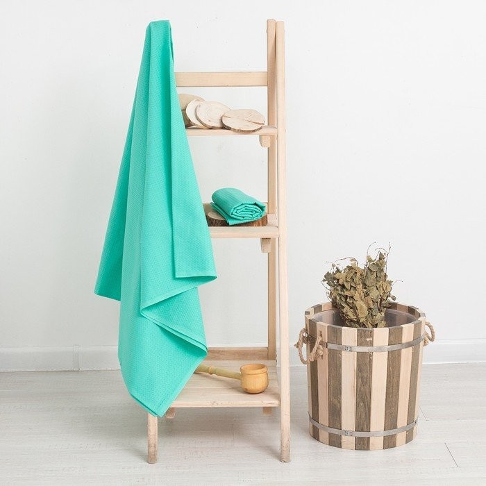 Простыня вафельная для бани Экономь и Я 150×180 см, цвет бирюзовый 100% хл, 200 гр/м2