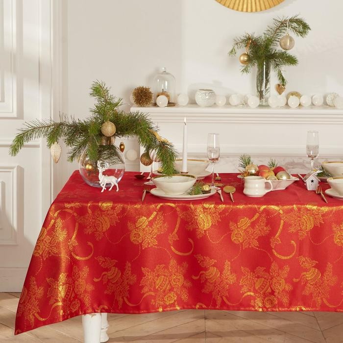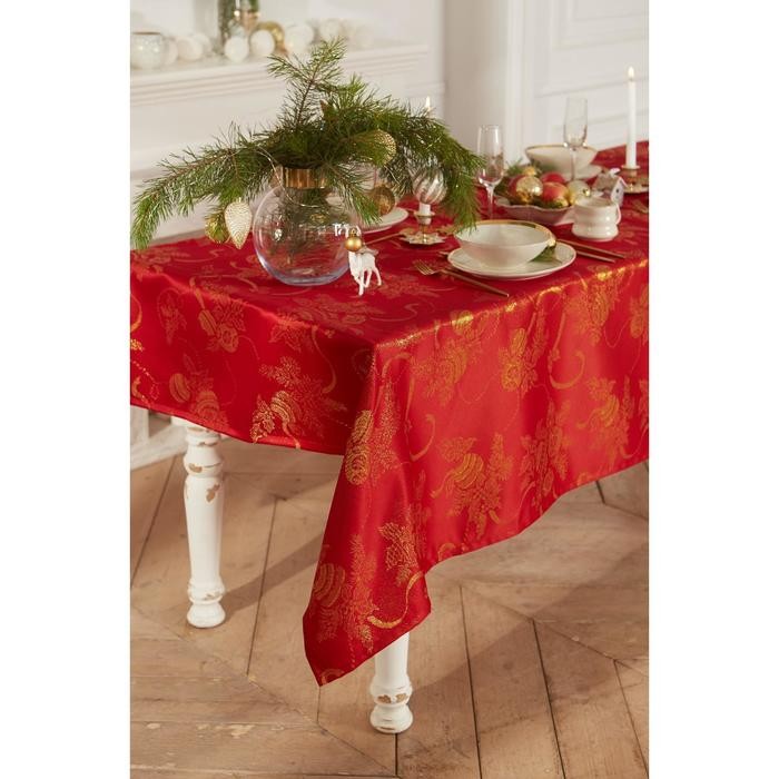 Скатерть Этель «Счастливый Новый год» красный, 150*220 см, 115 ±10 гр,100% п/э