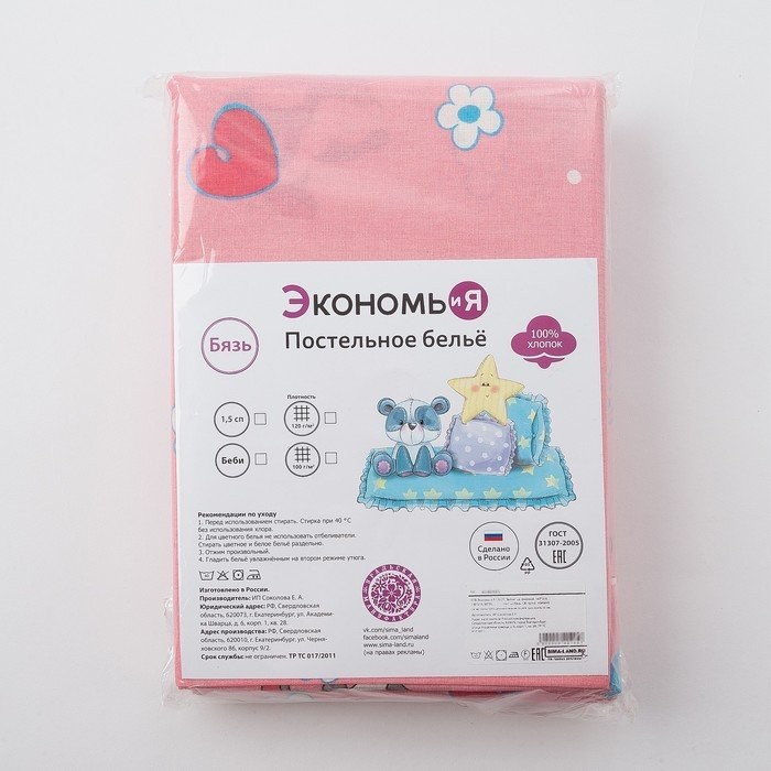 Постельное бельё Экономь и Я 1,5 сп. «Зайки» цвет розовый, 145×210, 150×210, 50×70 см-1 шт, бязь 120 гр/м2