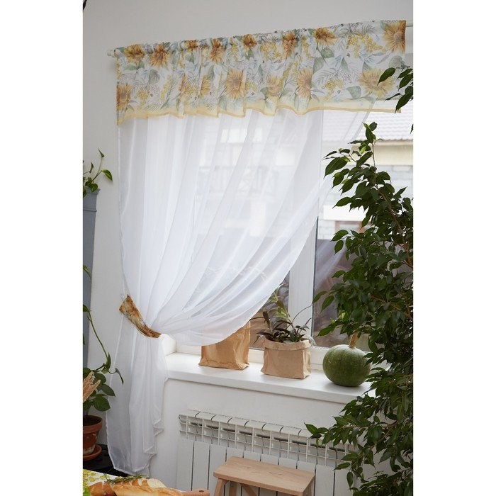 Тюль с подхватом и ламбрекеном «Солнечные цветы» 250х200см, 100% п/э, вуаль