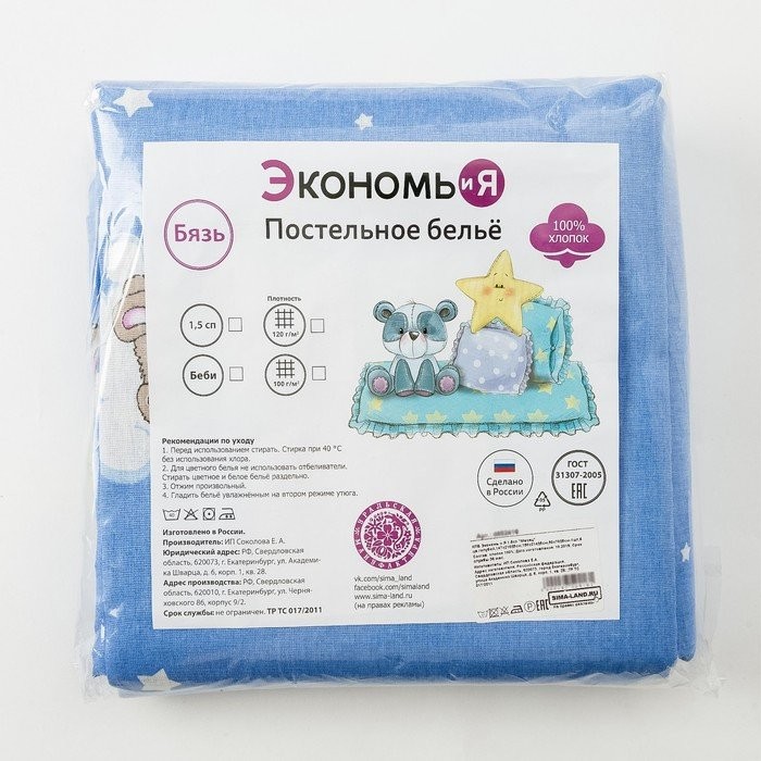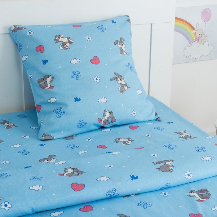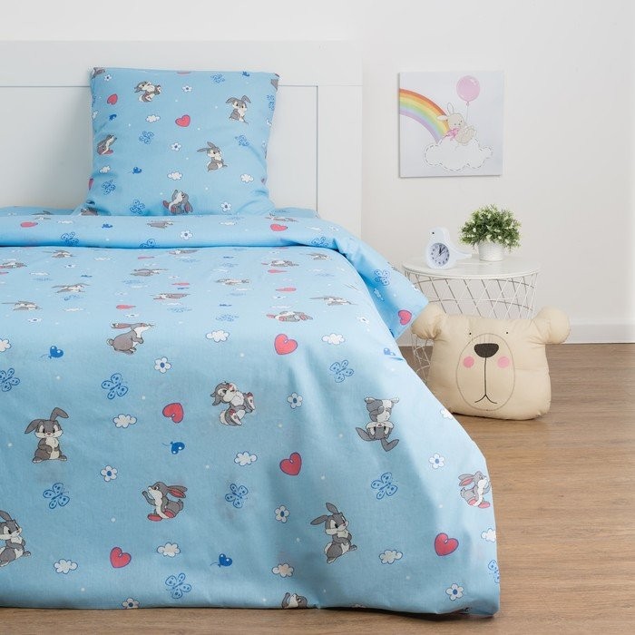 Детское постельное бельё Экономь и Я «Зайки» 1.5сп, цвет голубой, 147×210±5см, 150×214±5см, 70×70±5см — 1шт