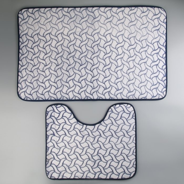 Набор ковриков для ванны и туалета Доляна «Винель», 2 шт: 40×50, 50×80 см, цвет синий