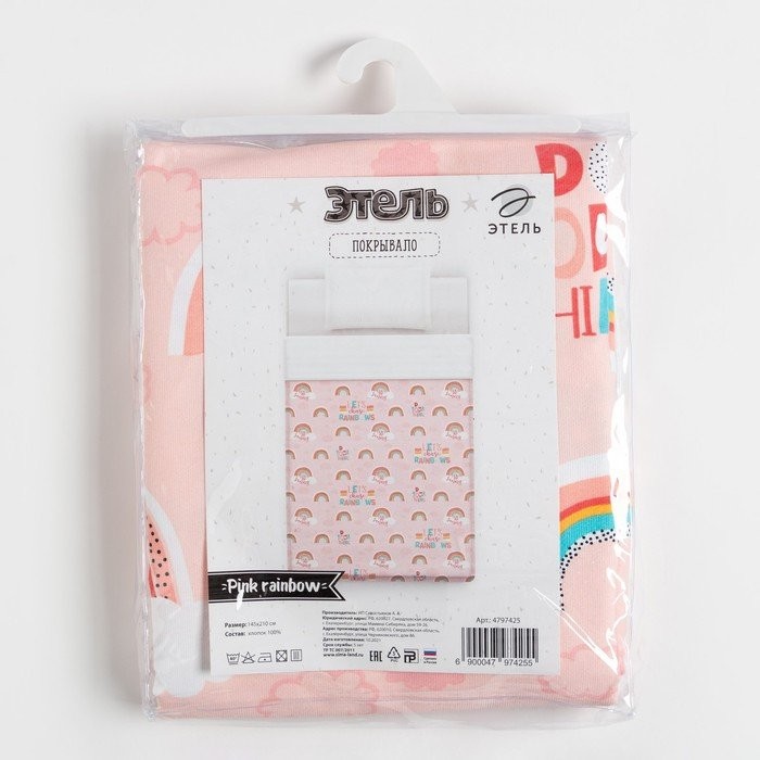 Покрывало детское Этель 1,5 сп «Pink Rainbow», 145×210 см, 100% хлопок