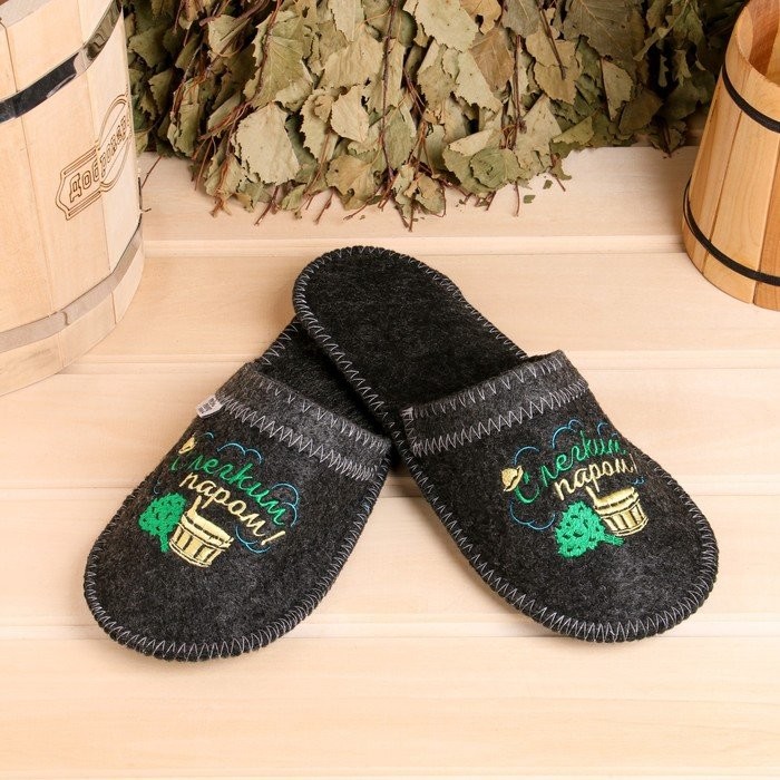 Войлочные тапочки с округлым закрытым носком обеспечивают комфорт и безопасность во время посещения бани и сауны. Натуральный войлок отлично впитывает излишки влаги, поддерживает оптимальную температуру, расслабляет и массирует стопу. Изделия выполняют также и гигиеническую функцию, что немаловажно при посещении общественных заведений.