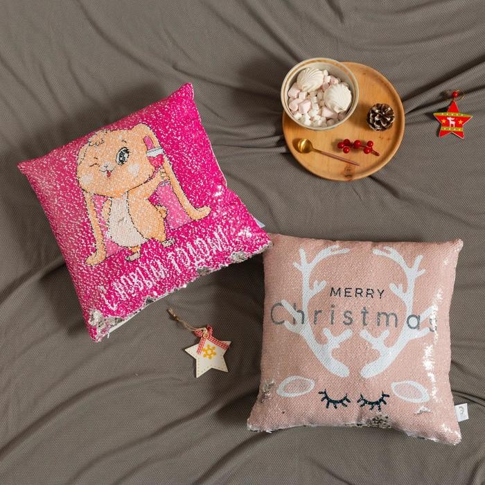 Наволочка с пайетками Этель «С новым годом» 40×40 см, 100% п/э