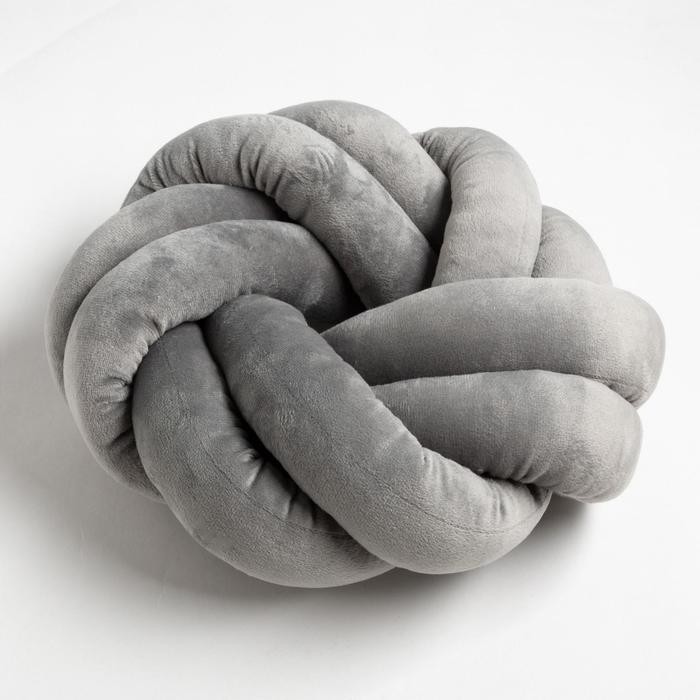 Подушка декоративная узел «Этель», d=33см, цвет тёмно-серый, велюр