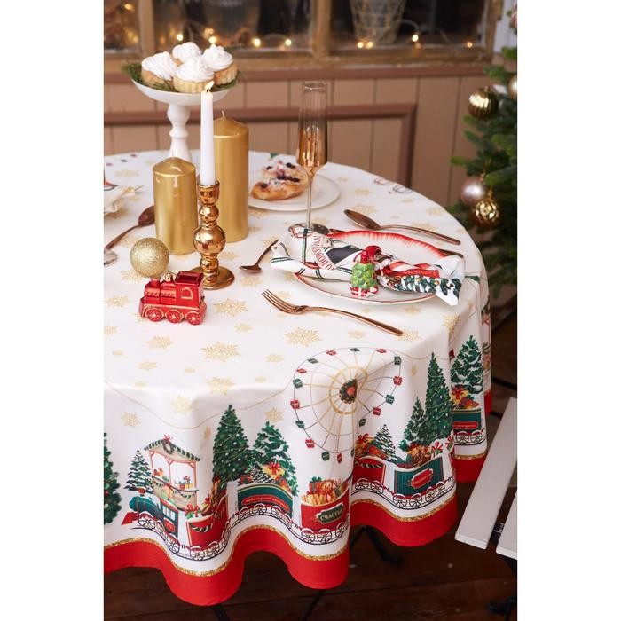 Скатерть «Этель» Новогодняя ярмарка d=220 +/- 3см с ГМВО, 100%хл, саржа 190 гр/м2