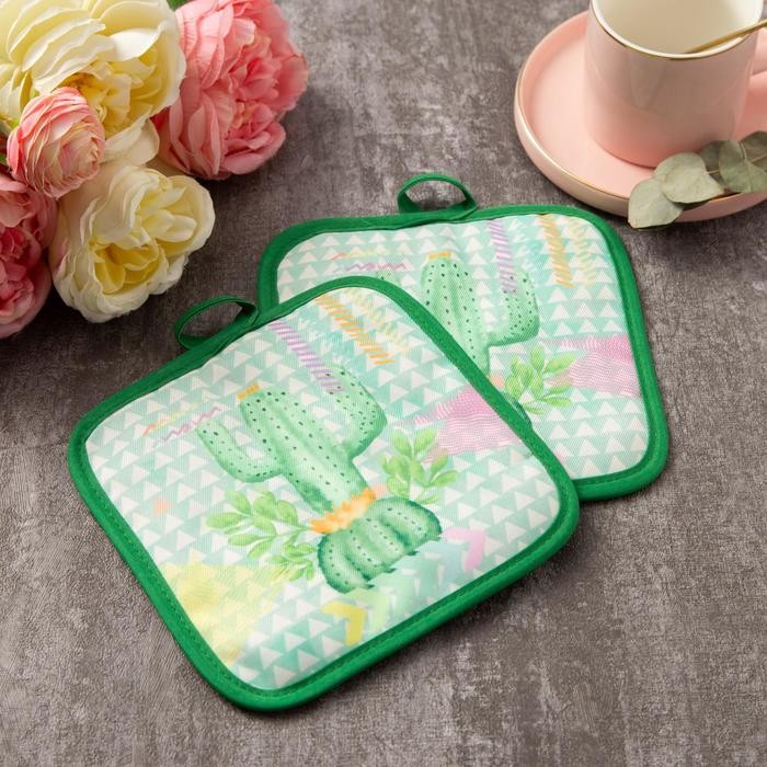 Кухонный набор Доляна «Кактус» прихватка 17×17 см — 2 шт