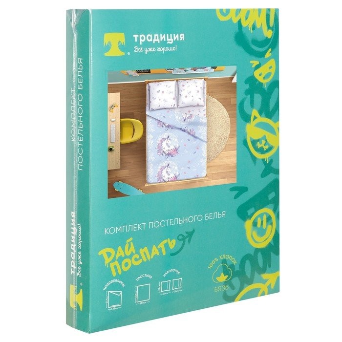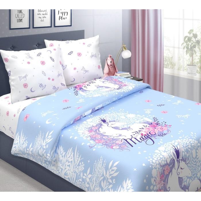 Постельное бельё 1,5сп «Дай поспать» Единорог, голубой 147×217, 150×220, 70х70см — 2 шт