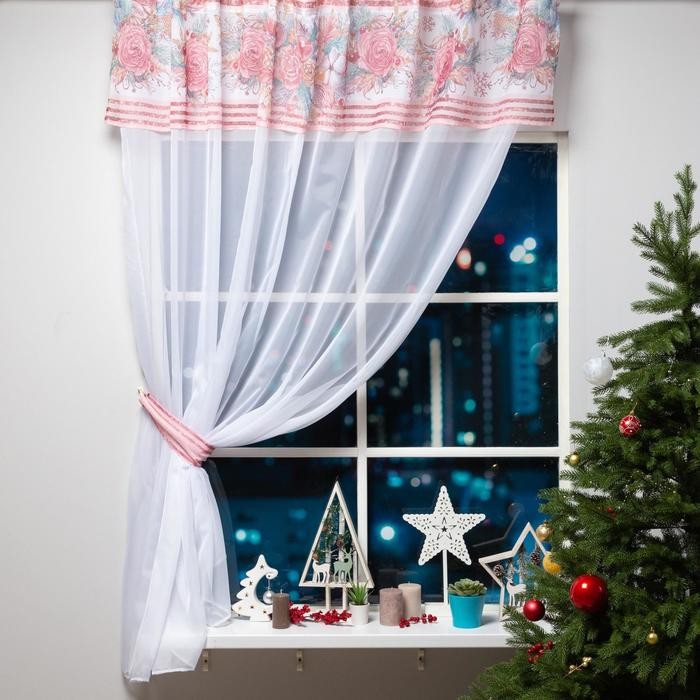 Тюль с подхватом и ламбрекеном «Pink magic» 250х200см, 100% п/э, вуаль