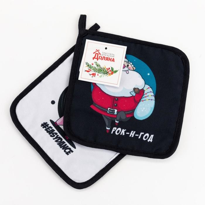 Новогодний набор кухонный «Рок-н-год " прихватка 17×17 — 2шт. 35% хл,65% п/э