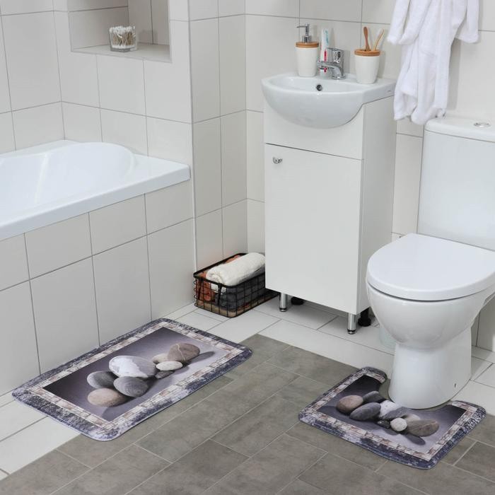 Набор ковриков для ванны и туалета Доляна «Камушки», 2 шт: 45×70, 39×45 см