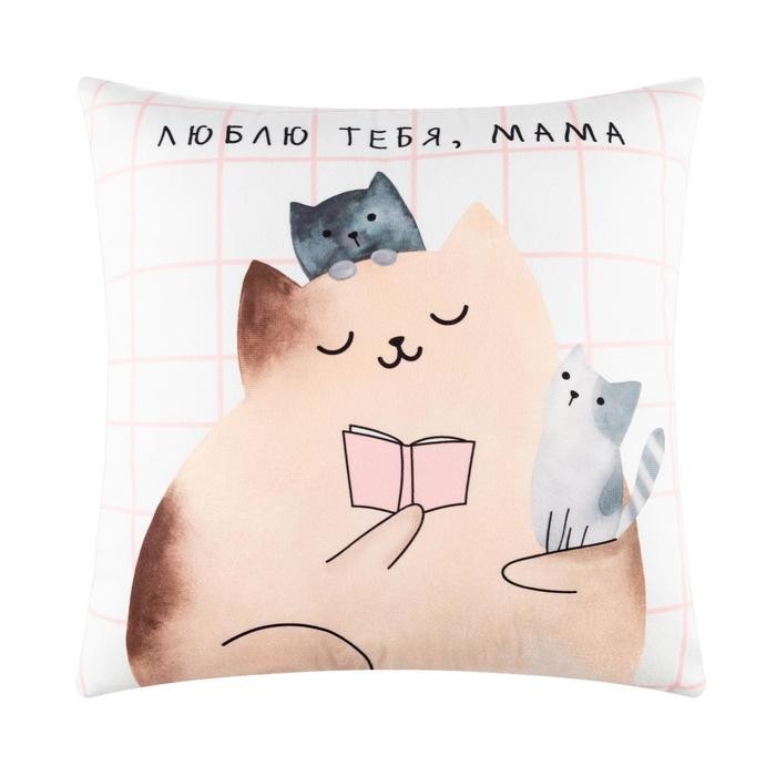 Подушка декоративная Любимая мама, 40×40 см, велюр, 100% п/э