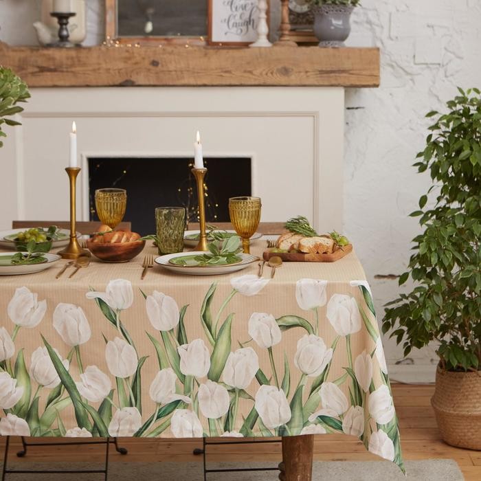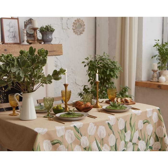 Скатерть «Этель» Белые тюльпаны 149х220см, 100% хл, саржа 190 г/м2