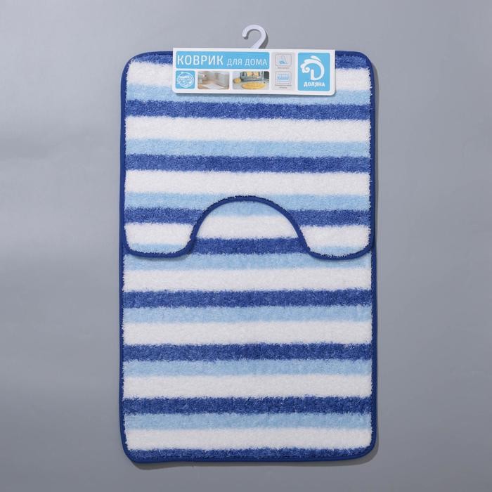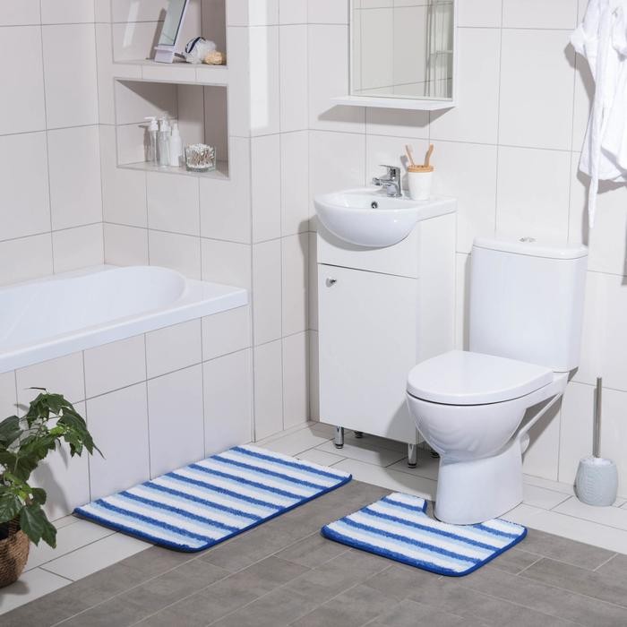Набор ковриков для ванны и туалета Доляна «Полосатик», 2 шт: 50×80, 40×50 см, цвет сине-белый