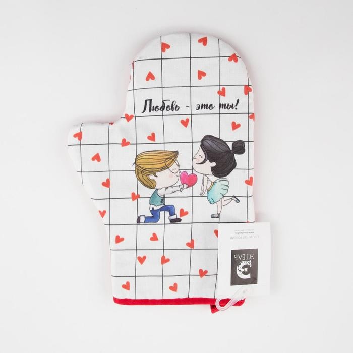 Варежка-прихватка «Любовь — это ты» 20х28см, саржа, 100% х/л, ватин 250г/м2