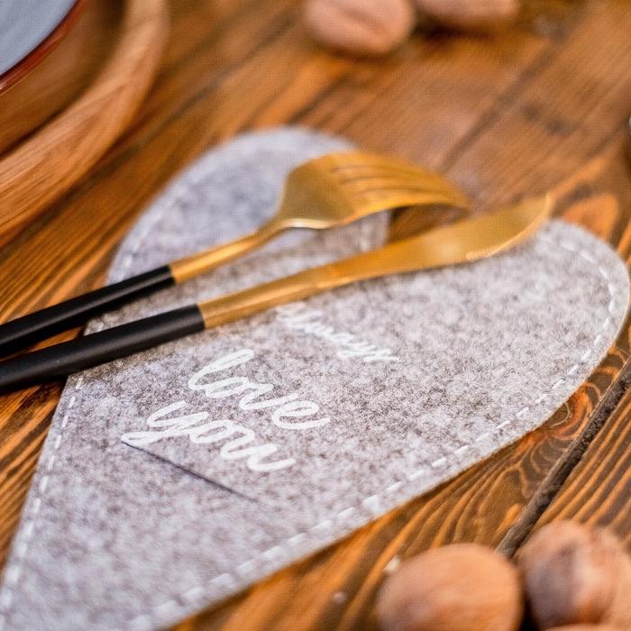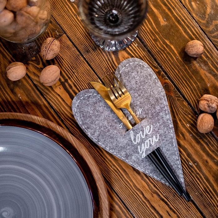 Конверт для столовых приборов «Сердце» серый, 13,8×22 см, 100% п/э, фетр