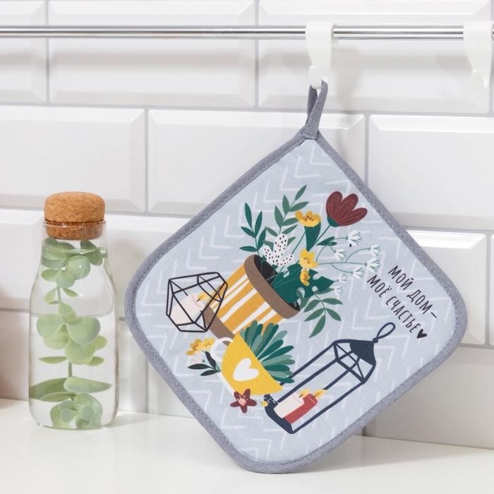 Прихватка «Мой дом — мое счастье» 19×19 саржа,100% х/л,ватин 250г/м2