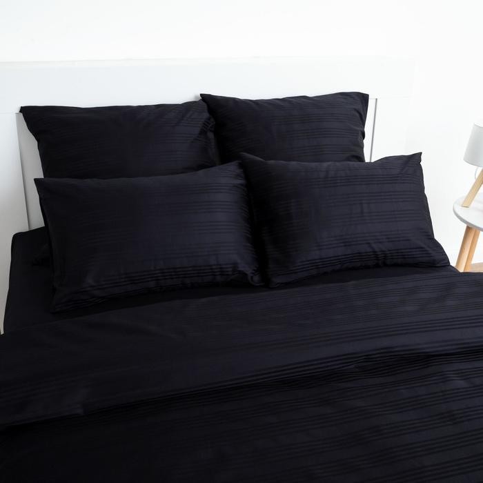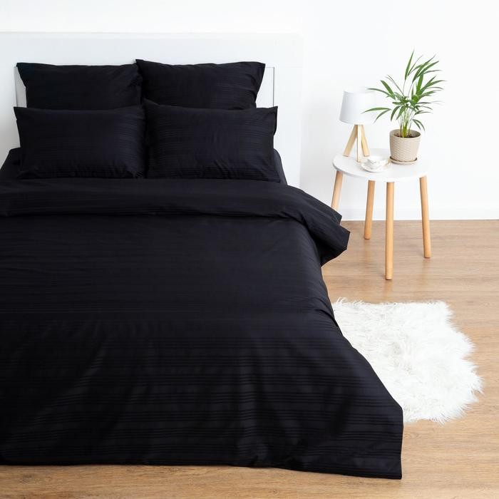 Материал наволочек и пододеяльника: страйп-сатин. Материал простыни: мако-сатин.