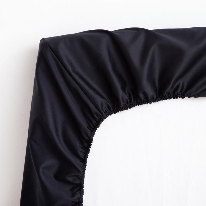 Простыня на резинке Этель 180*200*25 см, цв.черный, 100% хлопок, мако-сатин, 125 г/м²